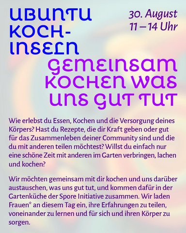Wie erlebst du Essen, Kochen und die Versorgung deines Körpers? Hast du Rezepte, die dir Kraft geben oder gut für das Zusammenleben deiner Community sind und die du mit anderen teilen möchtest? Willst du einfach nur eine schöne Zeit mit anderen im Garten verbringen, lachen und kochen?