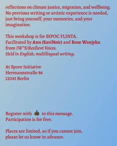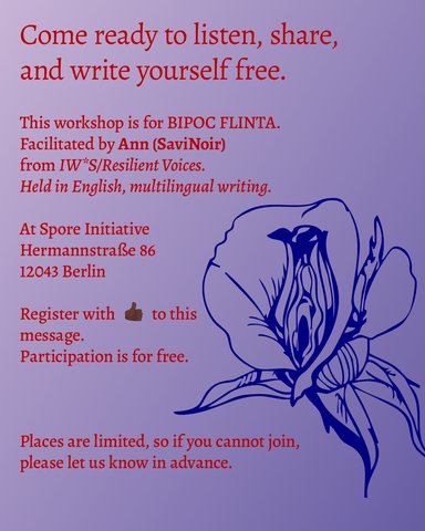 This workshop was for BIPOC FLINTA. Facilitated by Ann (SaviNoir) from IW*S/Resilient Voices.