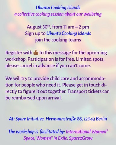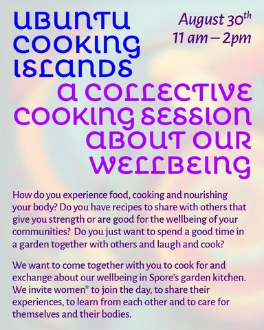 We came together to cook for and exchange about our wellbeing in Spore’s garden kitchen. We invited women* to join the day, to share their experiences, to learn from each other and to care for themselves and their bodies.