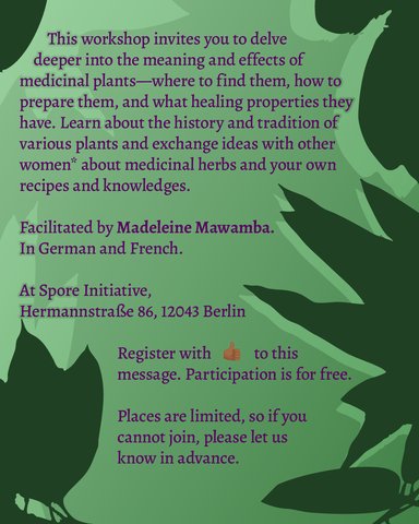 This workshop invited participants to delve deeper into the meaning and effects of medicinal plants-where to find them, how to prepare them, and what healing properties they have. They learned about the history and tradition of various plants and exchanged ideas with other women* about medicinal herbs and your own recipes and knowledges.