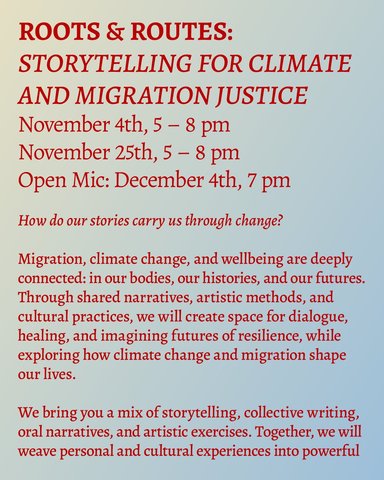 Migration, climate change, and wellbeing are deeply connected: in our bodies, our histories, and our futures. Through shared narratives, artistic methods, and cultural practices, we created space for dialogue, healing, and imagining futures of resilience, while exploring how climate change and migration shape our lives.