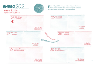 Podéis descargar el calendario completo y las páginas de enero para imprimir y hacer vuestras propias observaciones xook k'iin en la galería que aparece a continuación.